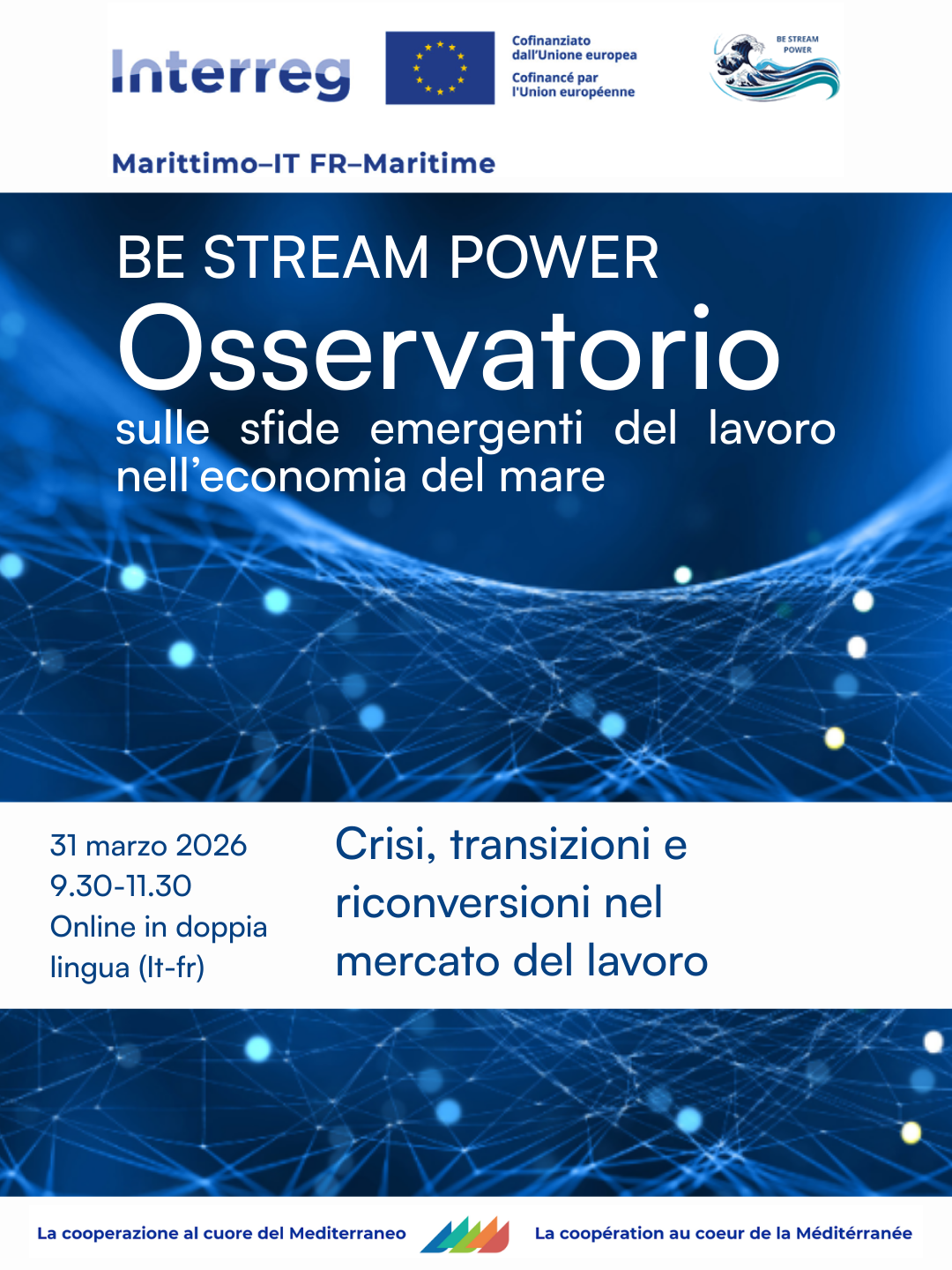 QUARTO INCONTRO ONLINE IN DOPPIA LINGUA ITA-FR DELL'OSSERVATORIO SULLE SFIDE EMERGENTI DEL LAVORO NELL'ECONOMIA DEL MARE: 31 MARZO 2026 DALLE 9:30 ALLE 11:30